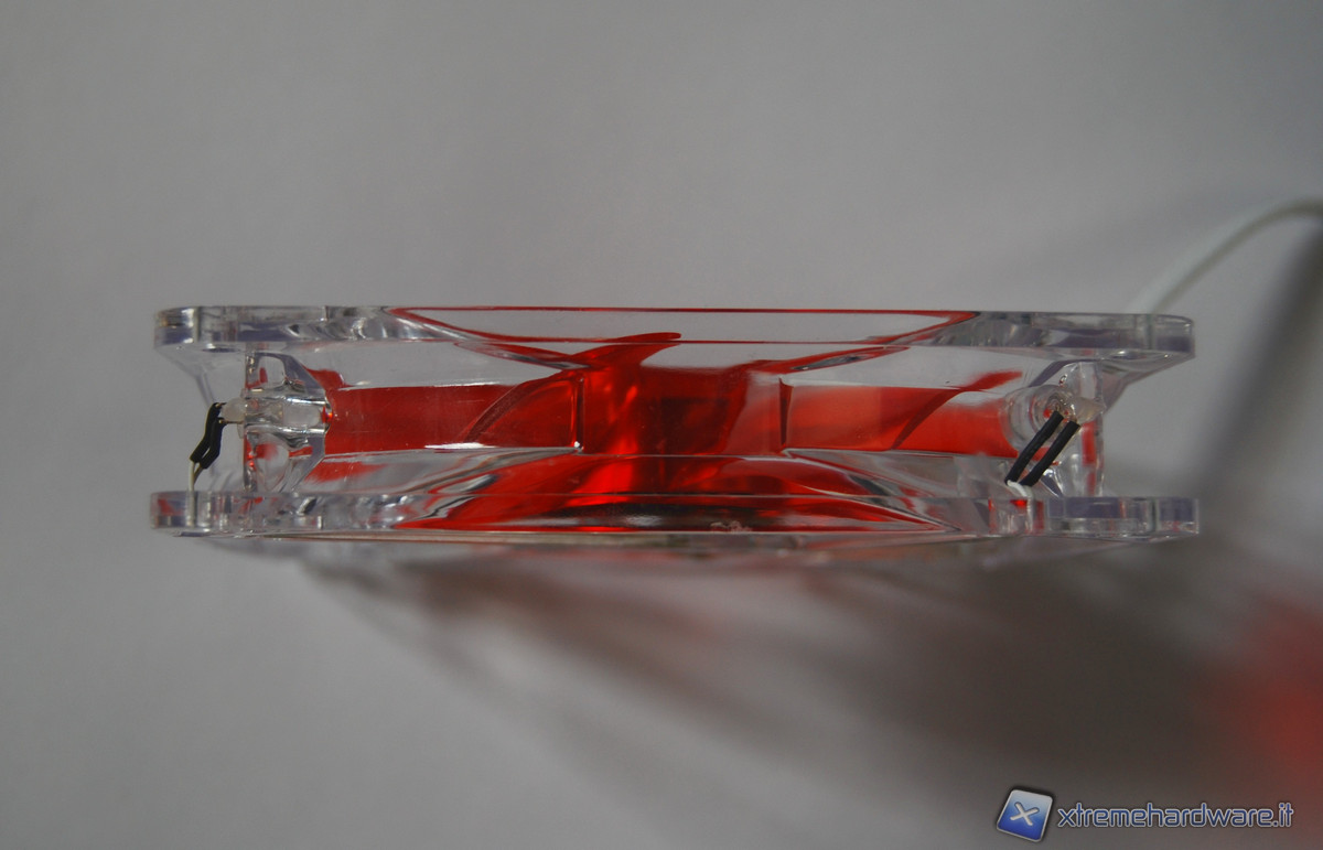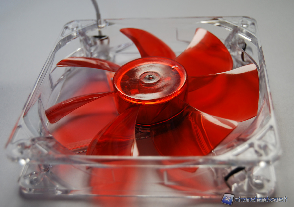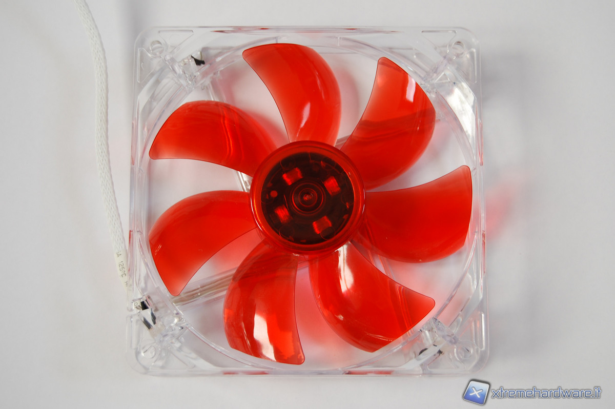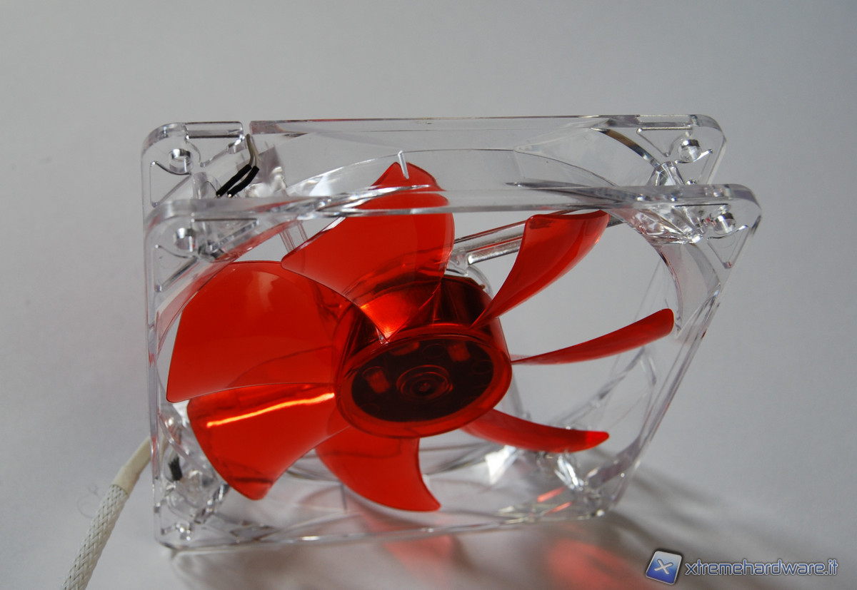 Una finestra trasparente ci dà un’anteprima dei colori della ventola, trasparente per la scocca e rosso per le pale.