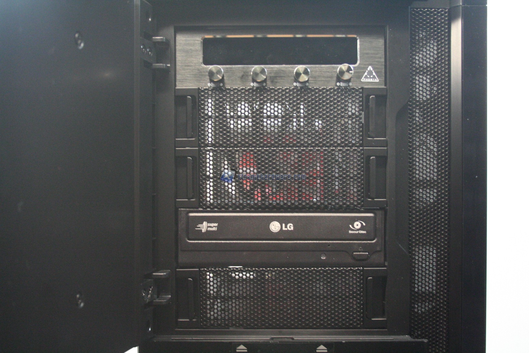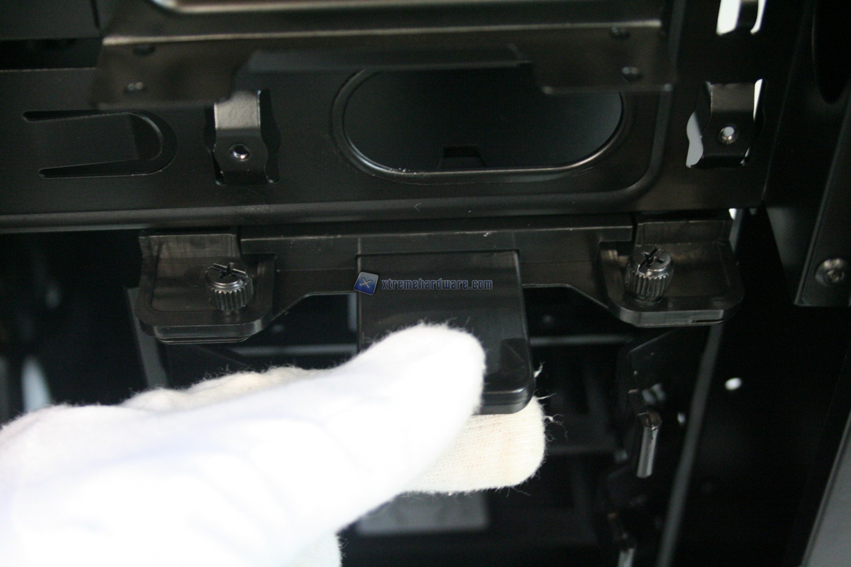 Per quanto riguarda le periferiche da 5.25” c’è un sistema proprietario che permette un installazione immediata. In sostanza bisogna semplicemente rimuovere il plate anteriore e far scorrere l’unità, si bloccherà automaticamente! Qualora fosse presente un fan controller con fori di plastica però sarà necessario l’utilizzo della classica viteria, e qui le cose si complicano perché sarà possibile avvitare solo da destra.