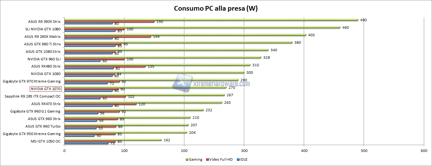 Abbiamo comparato i consumi di questa scheda video con altre VGA che abbiamo recensito ultimamente in modo da indirizzarvi meglio nell’acquisto, vi lasciamo il grafico per una migliore illustrazione: