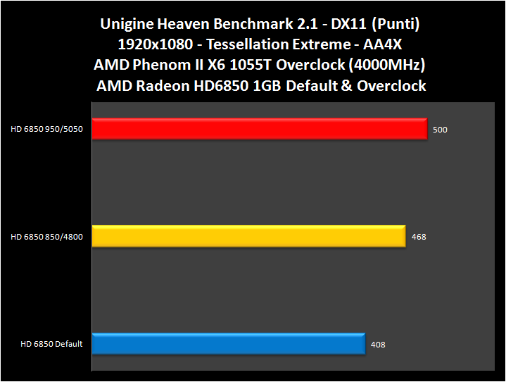 Di seguito vi mostriamo gli screen di Unigine Heaven 2.1 e 3DMark Vantage Performance, eseguiti con le suddette frequenze, su piattaforma AMD Phenom II X6.