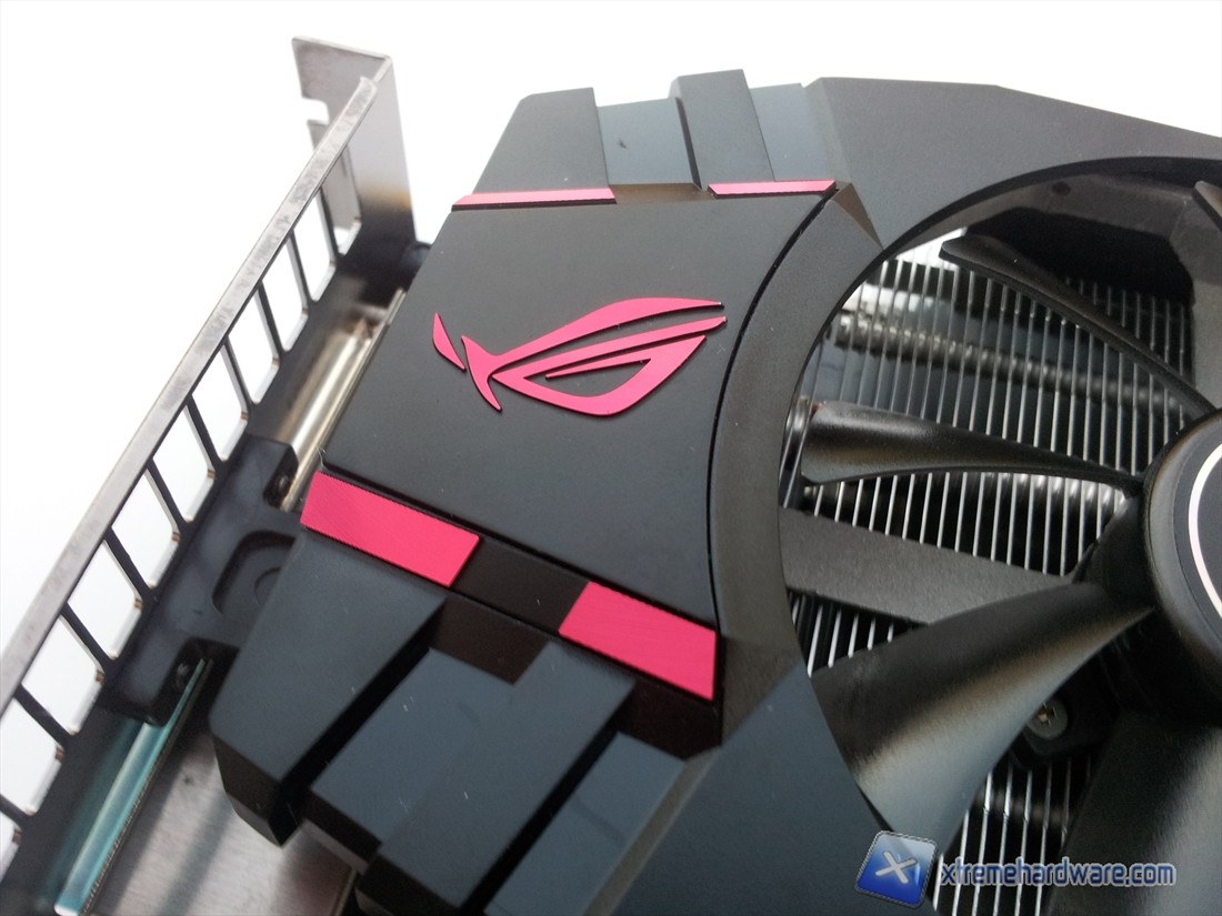 Sul lato del coperchio, rivolto verso il pannello laterale del case, è presente la scritta ASUS Matrix, la scritta Matrix cambia colore a seconda della temperatura della scheda video, spaziando dal celeste al rosso. La circuiteria del sistema di retroilluminazione è inserita all'interno del coperchio ed è abbastanza compatta, tuttavia incrementa maggiormente le dimensioni della scheda video che risulta molto ingombrante.